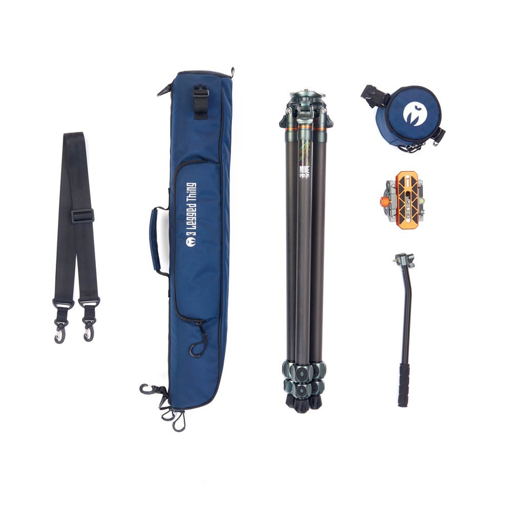 Vyrovnávací základna obsahuje vodováhu pro vyrovnání hlavy na stativu, takže si poradíte i při práci v nerovném terénu. Na jedné straně má zajišťovací knoflík pro uzamčení nebo odemknutí srovnávače. Tření vyrovnávací základny je řízeno D-kroužkem na spodní straně základny, který navíc umožní připevnění závaží k nohám pro zvýšení stability. Pevná a zcela vyvážená konstrukce z 8 vrstev uhlíkových vláken a klouby ze slitiny hořčíku pro letecký a kosmický průmysl zajistí stativu potřebný balanc i spolehlivost za každé situace.