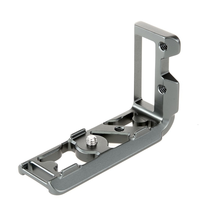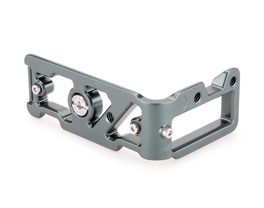 Délka držáku činí 100 mm a zadní hrana základny je zkosená pro lepší přístup k výklopnému displeji a k dalším důležitým funkcím fotoaparátu. Svislá součást je obrobena tak, aby neblokovala porty či bateriová dvířka fotoaparátu, a navíc může být namontována naopak, aby bylo možné připojit kabely z pravé nebo levé strany. Zároveň k destičce můžete připnout popruh, a to pomocí 1/4″ závitu nebo integrovaného očka.