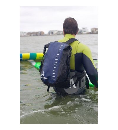 Voděodolný batoh určený pro ochranu obsahu při pobytu v mokrém prostředí • odolné provedení chránící povrch proti oděru • boční kapsy pro lahve s nápoji • nastavitelné ramenní, hrudní a bederní popruhy • celkový objem batohu lze do jisté míry nastavit pomocí horního uzávěru • poutko pro uchycení karabiny • šedo-zelené provedení • barva: studená modrá • váha batohu: 817 gramů / váha bederního popruhu: 73 gramů • vnitřní objem batohu: 28 litrů