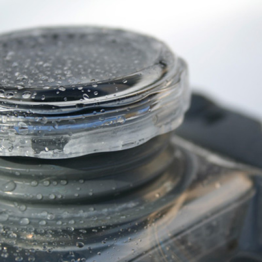 Pouzdro pro videokameru, vodotěsné do 5m. V místě objektivu je vstuženo tvrdou obroučkou.