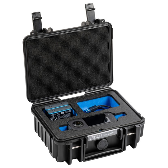 VŠE MUSÍ SEDĚT: akční kamera není levná, a proto by měla být při přepravě co nejlépe chráněna spolu se svým vybavením. Pouzdro B&W Case 500 s pěnovou vložkou pro váš Insta360 X3 nabízí i přes svou kompaktní velikost prostor pro vaši akční kameru a další vybavení.
