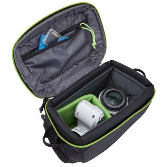 - Pro vyšší ochranu a lepší přehled odděluje fotoaparát od příslušenství polstrovaná flexibilní přepážka.