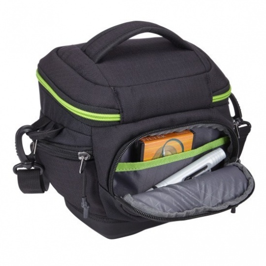 - Rychlý přístup k paměťovým kartám, filtrům nebo drobnému příslušenství v kapse ve víku.