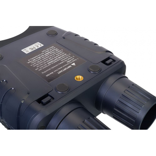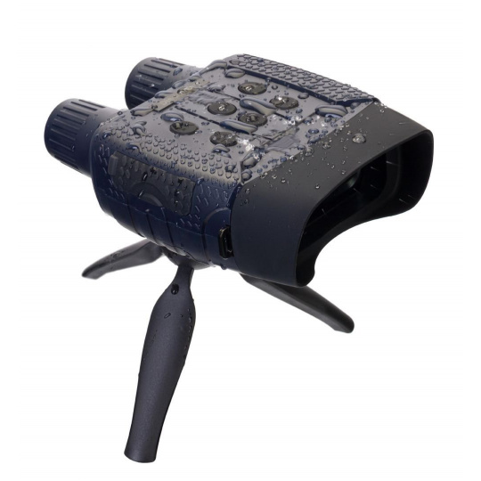 Opticko-digitální systém tohoto zařízení se nachází ve voděodolném těle s ergonomickým designem, takže je teleskop připravený na každou výzvu, co se naskytne. Binokulární dalekohled zajišťuje pevný úchop, kdy jsou ovládací tlačítka umístěna přímo pod konečky prstů pro maximální pohodlí za každé situace. Dalekohled vydrží v nabitém stavu 4 až 10 hodin v závislosti na intenzitě infračerveného přísvitu, takže se nebudete zbytečně zdržovat dobíjením či výměnou baterií při svém putování. Zařízení je dodáváno se stolním stativem, který je ideální pro dlouhá stacionární pozorování a stabilizaci obrazu během nahrávání videa.