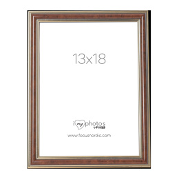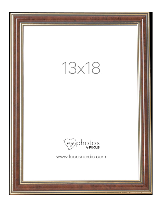 Hnědý obrouček s klasickým a profilovaným stylem. Obrouček je vyrobený z kompozitu. Rámeček se dodává se skutečným sklem, které na fotografiích zvýrazní to nejlepší. Se stojánkem vzadu, který umožňuje umístit rámeček na polici nebo stůl. Profil rámečku má hloubku 14 mm a šířku 19 mm. Velikost obrázku v rámečku je 13x18 cm.