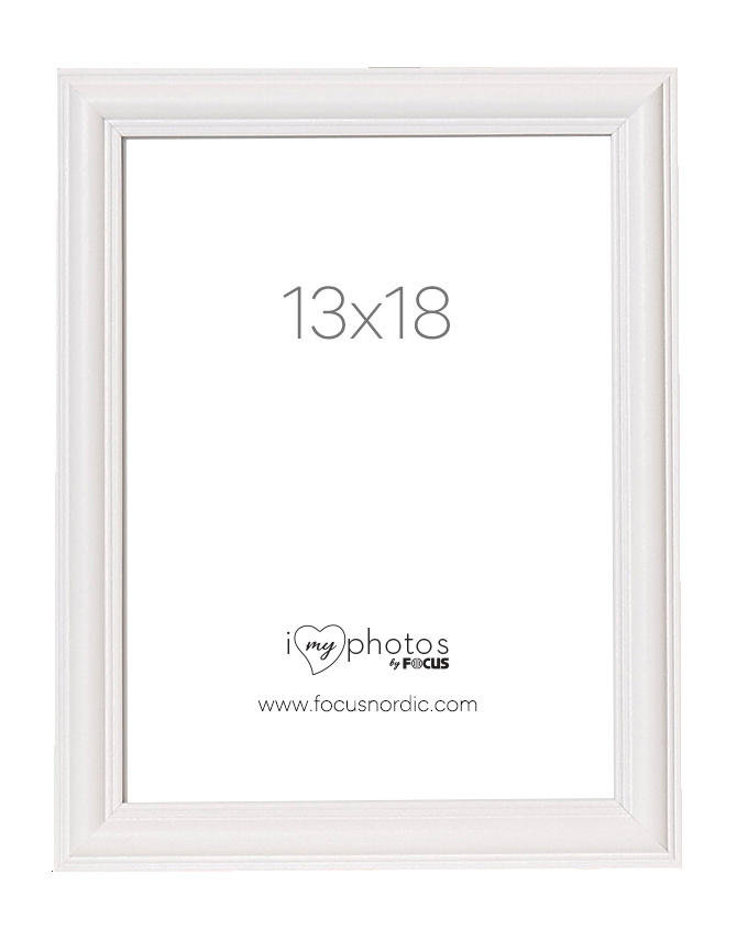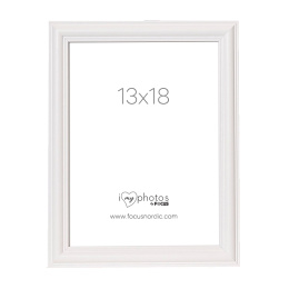 Bílý a dřevený obrouček s klasickým a profilovaným stylem. Rámeček se dodává se skutečným sklem, které na fotografiích zvýrazní to nejlepší. Se stojánkem vzadu, který umožňuje umístit rámeček na polici nebo stůl. Profil rámečku má hloubku 14 mm a šířku 19 mm. Velikost obrázku v rámečku je 13x18 cm.