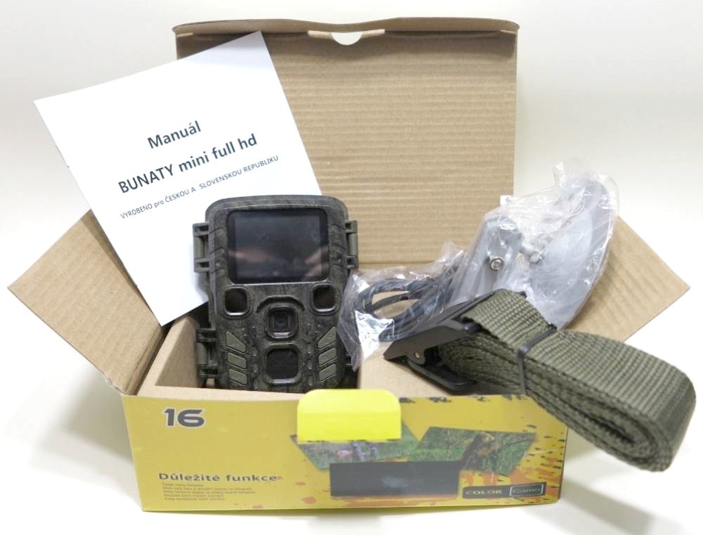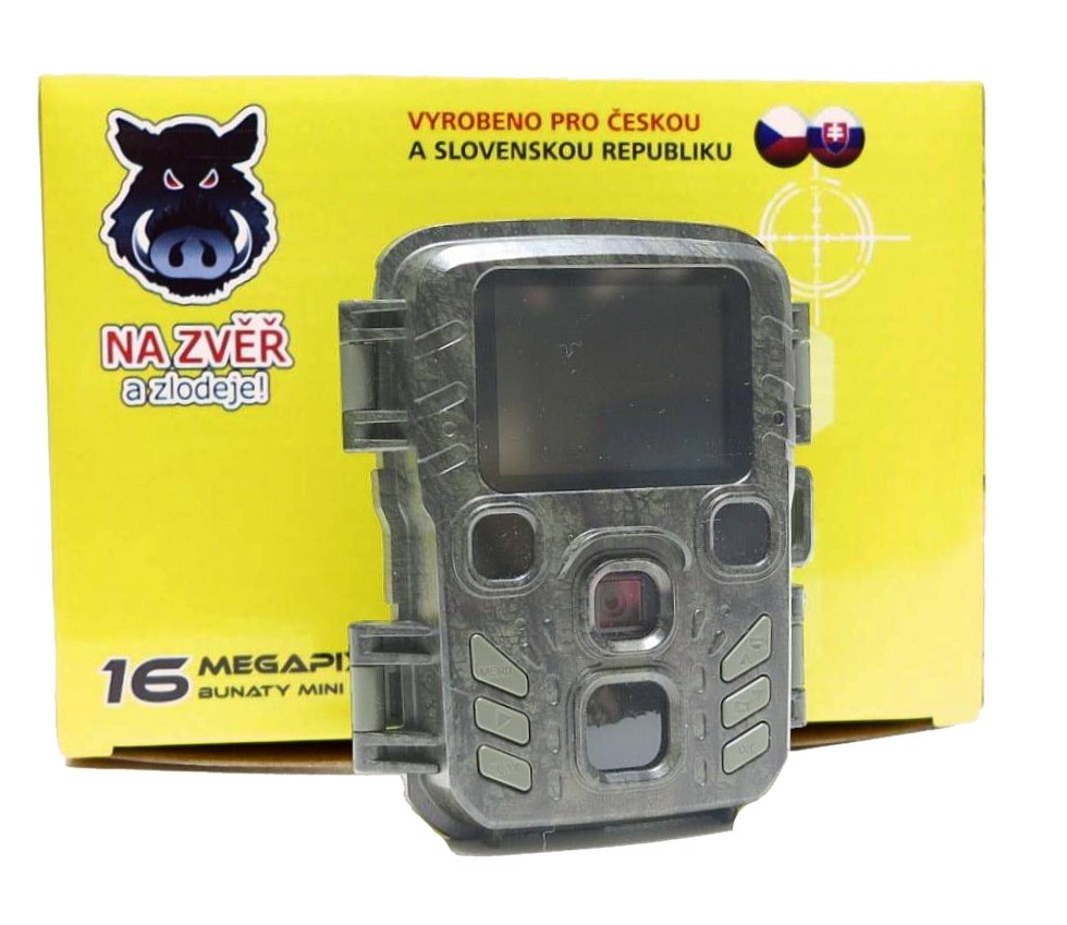 Nejmenší fotopast na světe se záznamem na sd kartu a úhlem snímání 52°. Nastavení fotopasti je opravdu snadné , menu fotopasti je samozřejmě v české jazyce, listovat v menu můžete pomocí šesti plnohodnotných tlačítek a vše vidíte na velkém barevném LCD displeji, právě díky těmto podstatným vlastnostem je fotopast BUNATY MINI FULL HD jiná než jiné malé fotopasti. Nenajdete na trhu žádnou jinou malou fotopast s tak velkým barevným displejem a takovým komfortem nastavení. Díky velkému displeji můžete také fotopast přesně zaměřit na sledovanou oblast, po přepnutí fotopasti do polohy fotografování začne na displeji odpočet času 45 vteřin , během této doby vidíte přesně na displeji co fotopast sníme, stačí jen jednoduše fotopast upevnit a namířit , po odpočtu času se fotopast sama přepne do aktivního režimu focení! Fotopast má rozlišení fotografií až 16 MP a video může natáčet, až v rozlišení FULL HD. I přes svou nízkou cenu fotopast má všechny pokročilé funkce včetně časovače a časosběru! Fotopast si můžete jednoduše nastavit od kdy do kdy má být aktivní, například jen v noci. Fotopast je možné připojit i na externí napájení. Vstup na externí konektor je ze spodu těla fotopasti. Mnoho jiných druhů fotopastí má nelogicky vstupní konektor v horní časti fotopasti a pak velmi často dochází k zatečení vlhkosti do elektroniky. U fotopasti BUNATY se Vám to nestane! U všech fotopastí BUNATY je samozřejmostí extrémně rychlá spoušť s možností nastavení sekvenčního fotografování, kdy fotopast zazamená pohyb a ihned pořídí ,až 3 fotografie v těsném sledu za sebou, máte tak jistotu, že Vám opravdu nic neunike! Podpora sd karet až do 32GB. Na běžnou SD kartu o velikosti 8GB se vejde až 9000 fotografií ! Fotopast na zloděje i na zvěř!