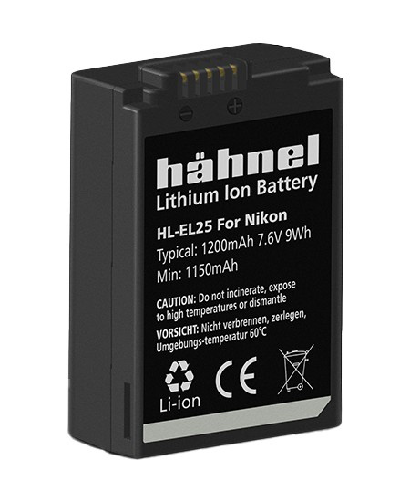 Hähnel HL-EL25 je alternativní baterie k originální baterii Nikon EN-EL25. Baterie je vyrobena z vysoce kvalitních článků a disponuje ochranným obvodem proti přetížení a zkratu.