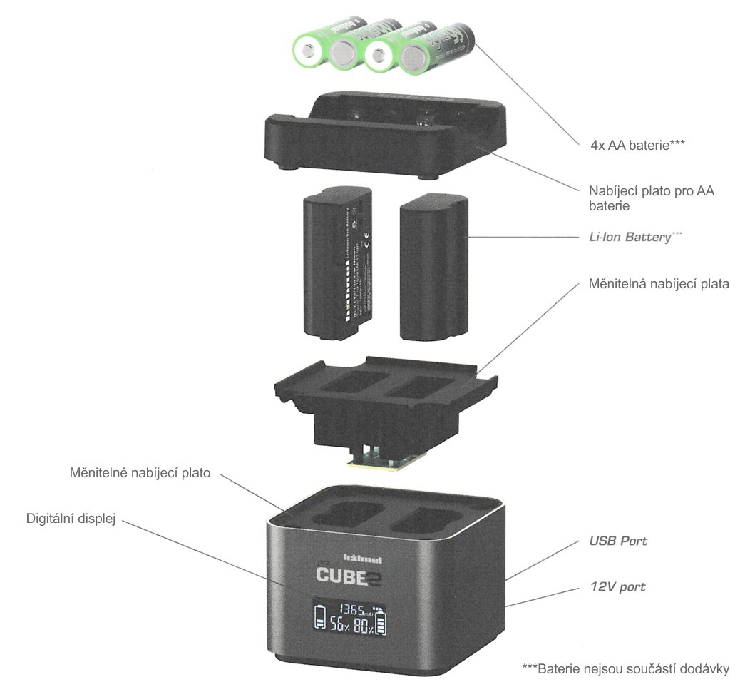 Profesionální duální nabíječka Hähnel ProCUBE2 s vyměnitelnými platy umožňuje nabíjet různé typy Li-ion baterií a díky dvěma zásuvkám můžete nabíjet dvě stejné baterie současně.
