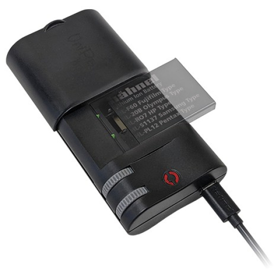 Univerzální nabíječka na Li-Ion baterie. Balení kromě nabíječky obsahuje micro USB > USB A kabel, síťový adaptér není součástí dodávky.