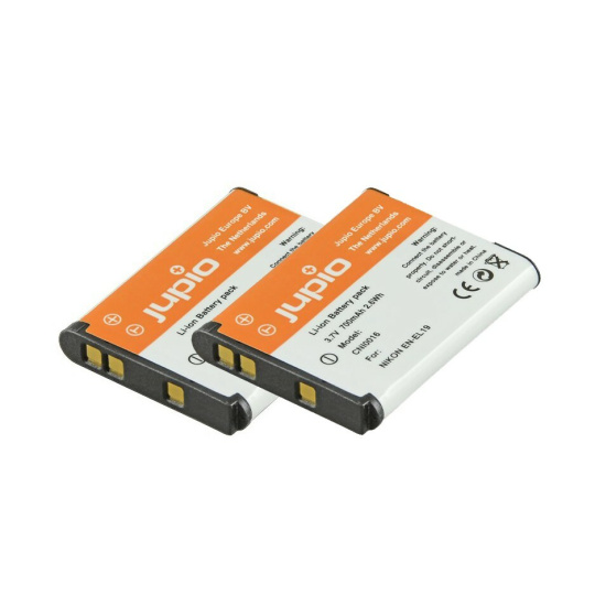 Set USB nabíječky (bez síťového zdroje) a 2 ks baterií Jupio EN-EL19 s kapacitou 700 mAh, která je určena pro kompatibilní digitální fotoaparáty Nikon.