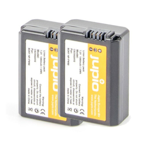 Set USB nabíječky (bez síťového zdroje) a 2 ks baterií Jupio NP-FW50 s kapacitou 1080 mAh, která je určena pro kompatibilní digitální fotoaparáty Sony.