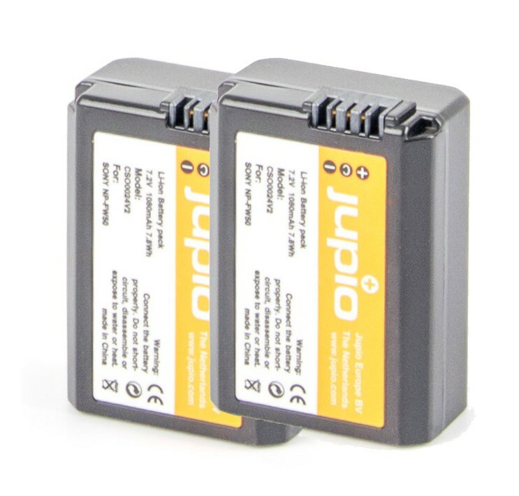 Set USB nabíječky (bez síťového zdroje) a 2 ks baterií Jupio NP-FW50 s kapacitou 1080 mAh, která je určena pro kompatibilní digitální fotoaparáty Sony.