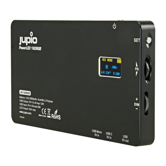 Jupio PowerLED 160RGB je přenosné barevné LED světlo s 80 RGB LED diodami a integrovanou baterií s funkcí powerbanky. Světlo je usazeno v pevném hliníkovém krytu.
