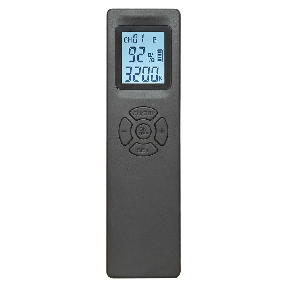 Na zadní straně světla je umístěn přehledný informační displej, který informuje o nastavených hodnotách. Displej tak zobrazí aktuální hodnotu jasu, barevné teploty, skupiny a čísla kanálu ovládání i stav baterie. Pomocí fyzických tlačítek a kruhového voliče přímo na displeji lze všechny tyto hodnoty jednoduše ovládat přímo na zadní straně světla, takže budete mít pod palcem osvětlení snímaného objektu.