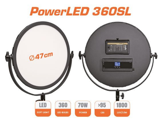 Kruhové měkké foto/video světlo Jupio PowerLED 360SL o průměru 47 cm nabízí 70W výkon světla a intenzitu osvětlení 1800 lux/m. Kruhové světlo se skládá ze 360 LED žárovek s vysokou svítivostí s nastavitelným jasem a se širokým rozmezím teploty a barvy pro nastavení perfektního osvětlení v individuálních situacích. Jas lze nastavit v rozsahu od 0 až do 100 % po intervalech 1 % a barevnou teplotu snadno nastavíte v rozmezí od 3200 K do 5600 K v intervalech po 100 K.
