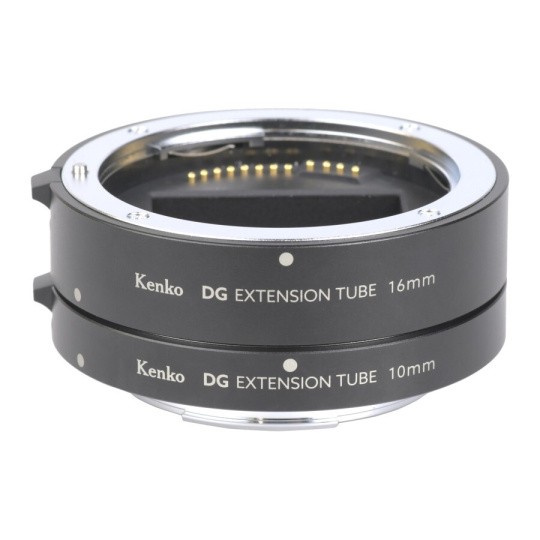Sada Kenko Extension Tube Set DG pro bajonet Canon RF Z se dodává v sadě 2 kroužků, 10 mm a 16 mm, které lze k dosažení delší ohniskové vzdálenosti použít společně.