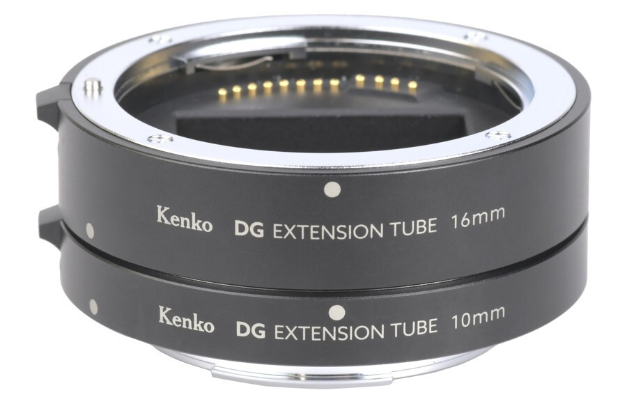 Sada Kenko Extension Tube Set DG pro bajonet Canon RF Z se dodává v sadě 2 kroužků, 10 mm a 16 mm, které lze k dosažení delší ohniskové vzdálenosti použít společně.