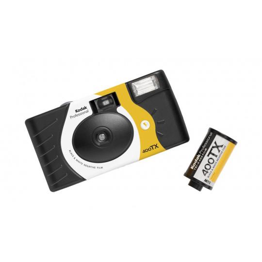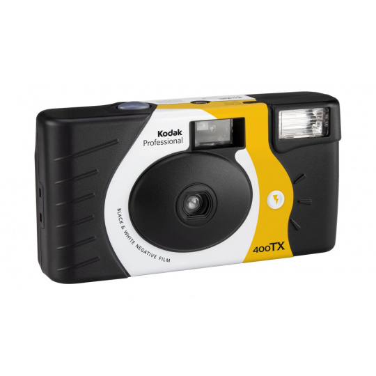 Černobílý jednorázový fotoaparát na 27 snímků s bleskem. Citlivost filmu je ISO 400. Fixfocus objektiv ostří od 1 m do nekonečna.