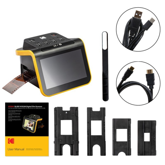 Naskenujte barevné a černobílé filmy (135, 110, 126) a diapozitivy v rámečku (5x5 cm), abyste si digitálně uchovali svá vzácná upomínková díla a zachovali si je živé pro nadcházející roky. Upravte barvy, otočte obrázky a další, abyste skutečně oživili tyto vzácné vzpomínky, poté připojte skener k televizoru a prožijte nostalgii s vysoce kvalitní prezentací na velké obrazovce.