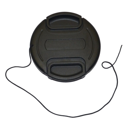 Přední krytka objektivu 43 mm. Ke krytce se dodává i šňůrka pomocí níž lze krytku připevnit k fotoaparátu a zabránit tak jejímu ztracení.