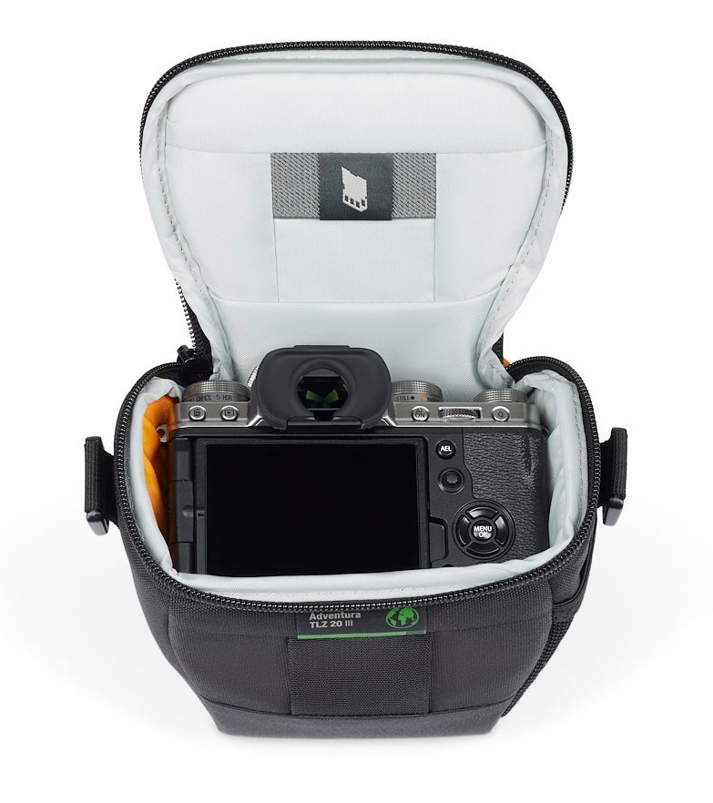 TLZ 20 poskytuje odolnou ochranu fotoaparátu a objektivu, lze jej uložit do větších tašek nebo přenášet pomocí odnímatelného/nastavitelného ramenního popruhu s protiskluzovou nášivkou. Součástí je integrované poutko na opasek a odolná tvarovaná základna bez obsahu PVC chrání vaše vybavení před vlhkostí, oděrem a nárazem.