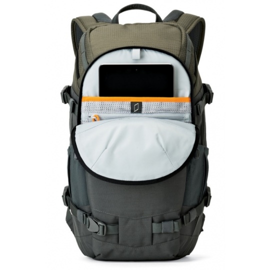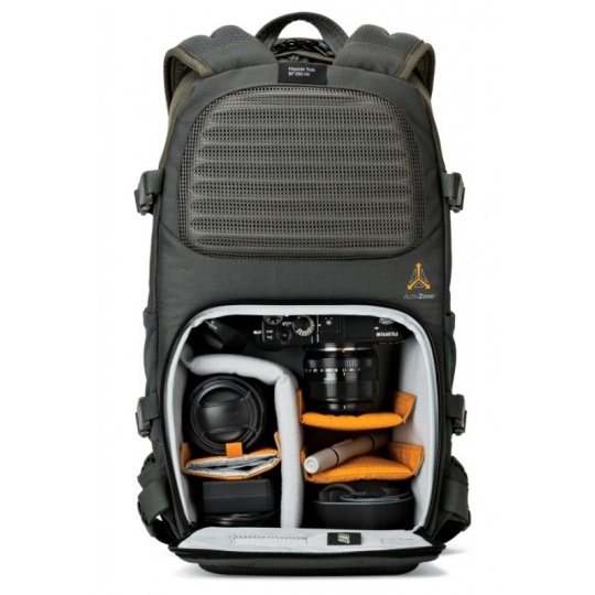 Flipside Trek AW. Dvoukomorové foto batohy outdoorového střihu. Dvoukomorové batohy se zadním otevíráním spodní fotokomory, horní komorou na osobní věci a velkou přední kapsou na tablet, notebook a osobní věci. Batohy se vyznačují moderním nadčasovým designem, praktickou a funkční konstrukcí (foto batoh lze „přestavět“ na jednokomorový turistický batoh), maximálním úložným prostorem, novými, lehkými a přitom velmi odolnými vnějšími materiály a mnoha dalšími vylepšeními.