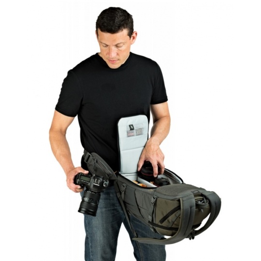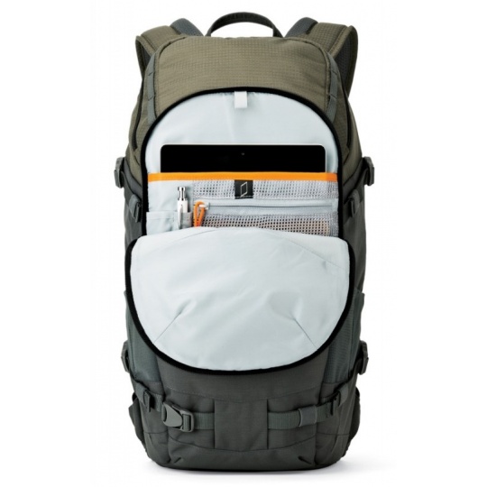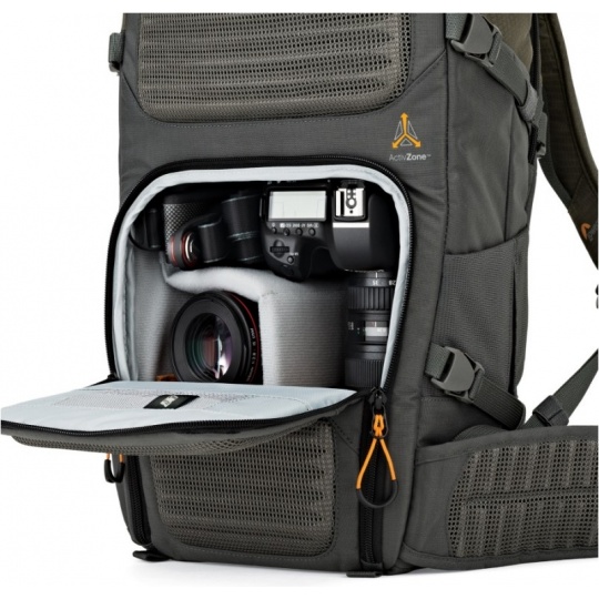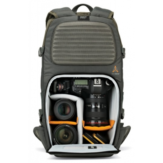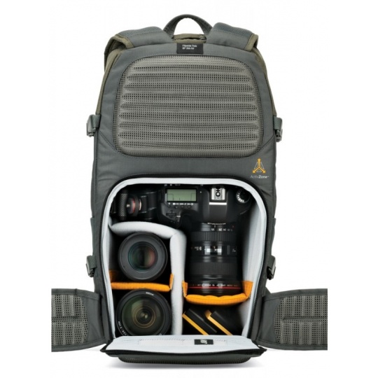 Flipside Trek AW. Dvoukomorové foto batohy outdoorového střihu. Dvoukomorové batohy se zadním otevíráním spodní fotokomory, horní komorou na osobní věci a velkou přední kapsou na tablet, notebook a osobní věci. Batohy se vyznačují moderním nadčasovým designem, praktickou a funkční konstrukcí (foto batoh lze „přestavět“ na jednokomorový turistický batoh), maximálním úložným prostorem, novými, lehkými a přitom velmi odolnými vnějšími materiály a mnoha dalšími vylepšeními.