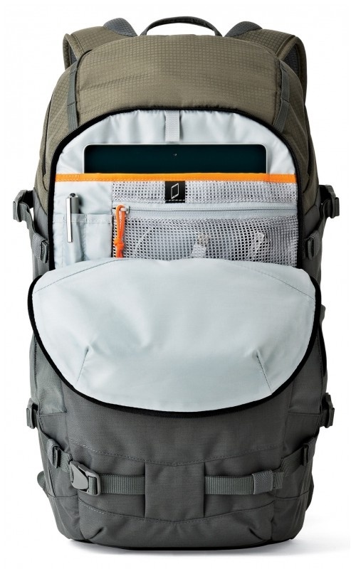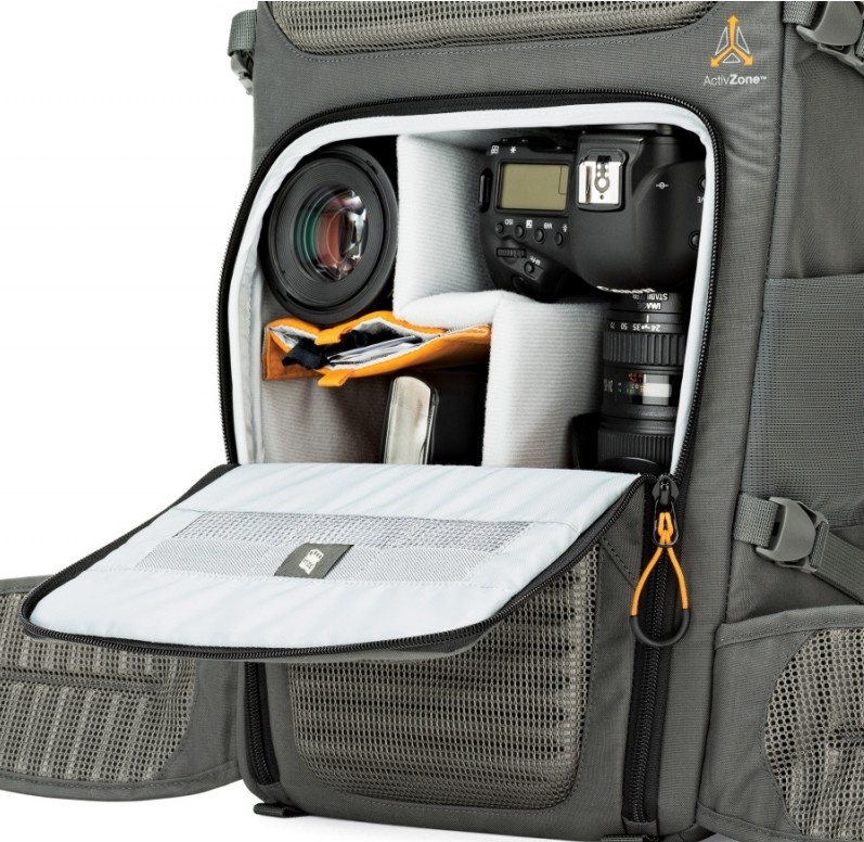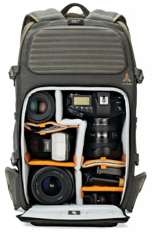 Flipside Trek AW. Dvoukomorové foto batohy outdoorového střihu. Dvoukomorové batohy se zadním otevíráním spodní fotokomory, horní komorou na osobní věci a velkou přední kapsou na tablet, notebook a osobní věci. Batohy se vyznačují moderním nadčasovým designem, praktickou a funkční konstrukcí (foto batoh lze „přestavět“ na jednokomorový turistický batoh), maximálním úložným prostorem, novými, lehkými a přitom velmi odolnými vnějšími materiály a mnoha dalšími vylepšeními.