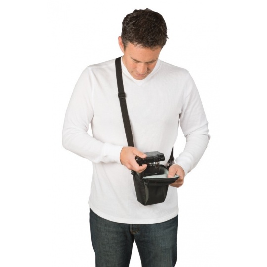 ● funkční, praktická konstrukce ● mimořádně nízká hmotnost ● fotokomora s jednou distanční oddělovací přepážkou na suchý zip ● víko brašny s praktickým reverzním otevíráním „od těla“ (zip YKK se dvěma kovovými jezdci) ● dvě vnitřní kapsičky na paměťové karty a akumulátor na vnitřní straně víka ● textilní 5cm široká smyčka pro uchycení na opasek nebo bederní pás na zadní straně brašny ● odnímatelný ramenní popruh se dvěma karabinami s úhlem protočení 360˚ ● praktická textilní polstrovaná rukojeť z hrubého plátna na ose brašny ● vnější materiály odolné nepříznivým povětrnostním podmínkám ● nadčasový „Lowepro design“ ●