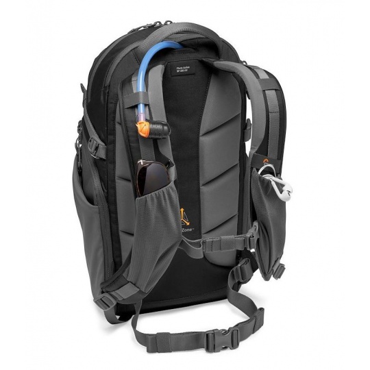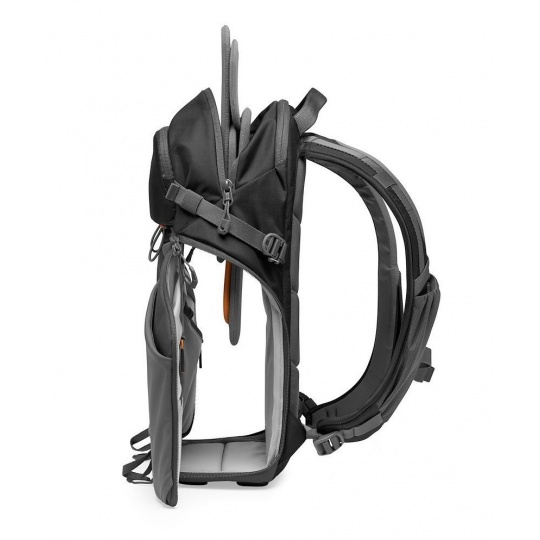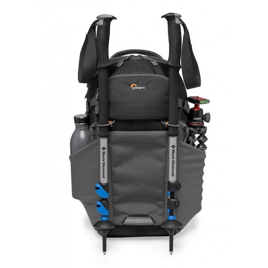 - pevná dvoukomorová konstrukce: hlavní fotokomora s přístupem z obou bočních stran a z horní strany, zadní komora na zip pro uložení hydrapaku, tabletu nebo notebooku