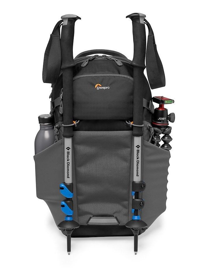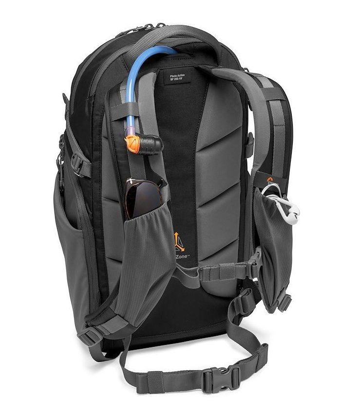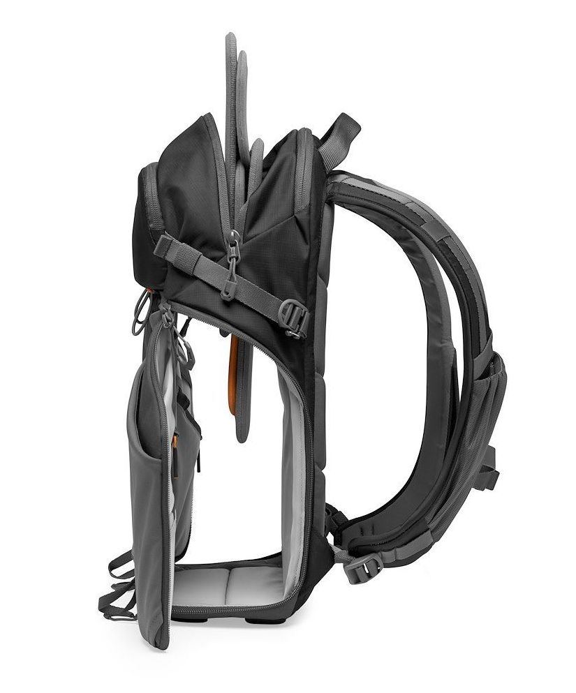 - pevná dvoukomorová konstrukce: hlavní fotokomora s přístupem z obou bočních stran a z horní strany, zadní komora na zip pro uložení hydrapaku, tabletu nebo notebooku