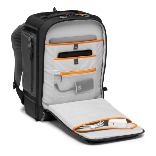 ● jednokomorová konstrukce s předním otevíráním ● menší hloubka a rozměry batohů reflektují nejnovější vývoj digitální techniky ● 2 pevné (nosné) dělící příčky a sada tenkých dělících příček na suché zipy umožňuje přizpůsobení vnitřního prostoru individuálním potřebám fotografa a objemu uložené techniky (MaxFit™ Systém) ● velká přední kapsa s vnitřním členěním včetně samostatné kapsy na notebook a samostatné kapsy na tablet ● vyjímatelné pouzdro GearUp Box na kabely, adaptéry a další příslušenství ● celkem 12 vnitřních a vnějších kapes na příslušenství a osobní věci ● systém ok, smyček a kompresních pásků pro uchycení SlipLock™ pouzder a dalších komponent ● HTH systém na uchycení stativu z přední nebo boční strany (Hideaway Tripod Holder™) ● ergonomické ramenní popruhy se SlipLock™ smyčkami a výškově nastavitelným hrudním páskem ● tvarovaná žebrová záda s tunelem pro uschování ramenních popruhů ● odnímatelný bederní pás se SlipLock™ smyčkami ● pogumovaná pásková rukojeť na horní straně batohu pro pohodlné nošení podél těla ● 1x páskové rukojeti z popruhové tkaniny na bočních stranách vhodné např. při ukládání batohu do kufru automobilu, boxu v letadle apod. ● nepromokavé a vysoce odolné vnější technické materiály ● všitá AWC pláštěnka (All Weather Cover™) pro ochranu v extrémních klimatických podmínkách