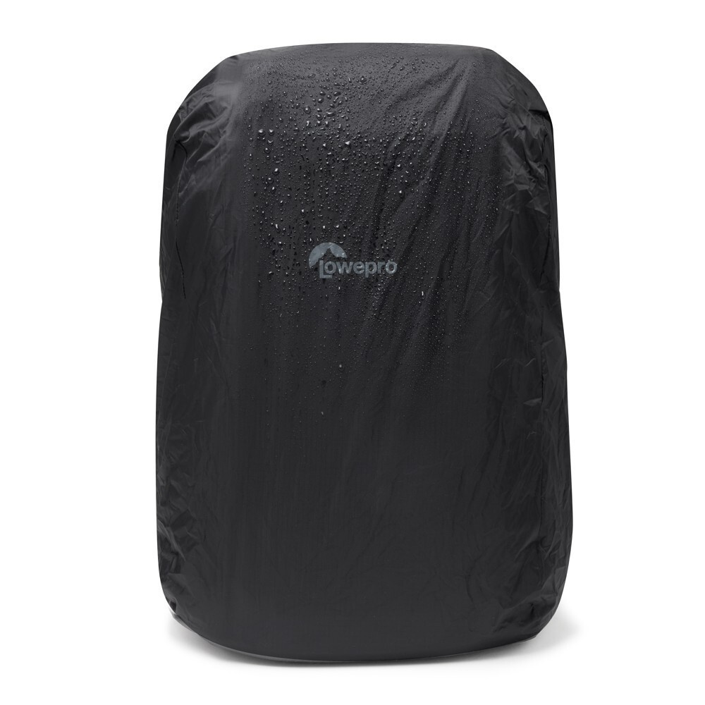 Uvnitř zadní strany se nachází zipové průhledné organizační přihrádky a kapsa CradleFit na notebook, která pojme až 16" MacBook Pro. Boční vstupy mají velké vnější pružné kapsy, které pojmou až 1L láhev, a jsou zpevněné na spodní straně pro podporu stativu. Další poutka a kapsy na horní části boků umožňují rychlý přístup k věcem a bezpečné připevnění stativu. Batoh stojí samostatně, což usnadňuje manipulaci a přístup k vybavení.