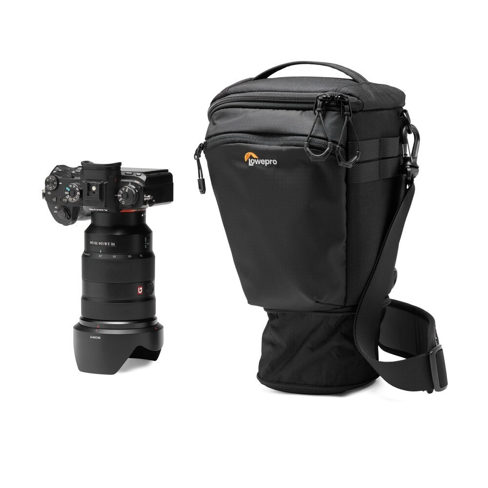 Nová velikost! Slim TopLoader pojme full-frame tělo a objektiv až 24-70mm F2.8, s rozšířením pro sluneční clonu. Kompatibilní s příslušenstvím se systémem SlipLock, jako jsou pouzdra na objektivy.