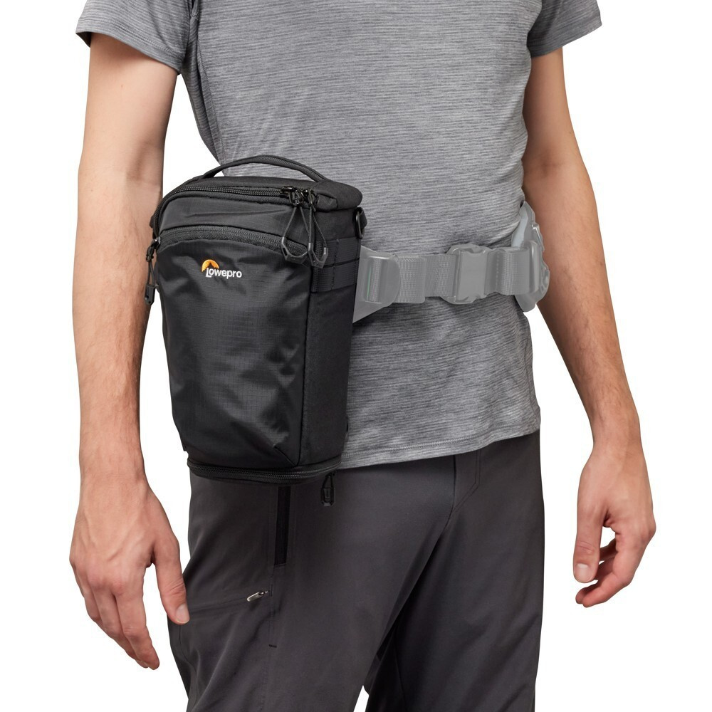 Představujeme ProTactic TLZ 70 Slim AW III, navržený pro profesionální fotografy, kteří fotografují na akcích a dalších zakázkách po celý den, většinou venku. Tento toploader je vhodný pro full-frame tělo bez portrétního gripu a objektiv až 24-70mm f2.8 (ne teleskopický). Taška obsahuje rozšíření pro umístění sluneční clony v pozici pro fotografování a dvířka se otevírají do strany pro snazší přístup k uchopení. Rychlouzávěr umožňuje rychlý přístup, zatímco vnitřní dělič drží fotoaparát v horní části pro snadné vyjmutí nebo rozdělí tašku na dvě části pro dva objektivy.