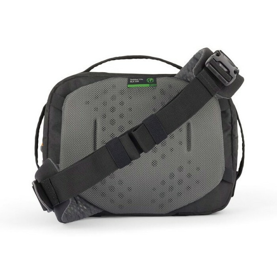 SLX 120 obsahuje 76 % recyklovaných a roztokem barvených tkanin, které snižují plýtvání vodou a negativní dopad na životní prostředí. Toto procento tvoří 51 % recyklovaných látek – včetně všech látek, popruhů, vázání, pásek na zip, šňůr a síťoviny a 25 % látek barvených roztokem použitých k výrobě každé tašky. Tato malá brašna na fotoaparát je ideální pro přenášení všech nezbytných součástí sady se spoustou praktických funkcí, přičemž je šetrná k životnímu prostředí, protože při výrobě vytváří méně skleníkových plynů a spotřebuje o ~80 % méně vody. Černá je praktická, všestranná a skvělá do exteriéru.