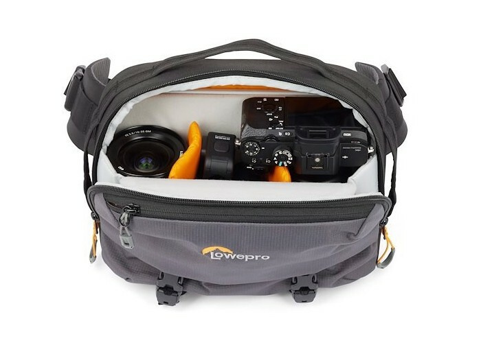K dispozici je malá přední kapsa na zip pro klíče, telefon nebo jiné drobnosti; a hlavní zip umožňuje přístup do prostoru pro fotoaparát. Dvojice popruhů umožňuje připevnit ke spodku stolní stativ nebo bundu. Na vnitřní straně tašky najdete v příslušenství držák na láhev s vodou, který lze použít s popruhy.