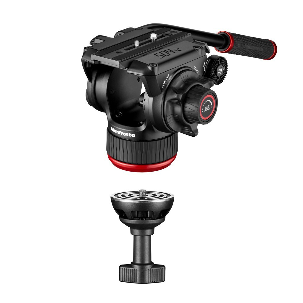 Fluidní video hlava Manfrotto 504X s plochou základnou je vybavena novou fluidní technologií značky Manfrotto, která umožňuje plynulejší pohyby a bezkonkurenční stabilitu při otáčení i naklápění. Představuje čtyřstupňový protizávažní systém podporující nastavení protizávaží až 6,5 kg při zatížení 55 mm C.O.G.