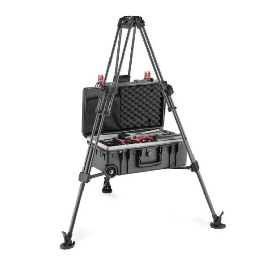 Video systém zahrnuje Manfrotto 509 Professional Fluid Video Head 645 Fast Twin Tripod z karbonu.