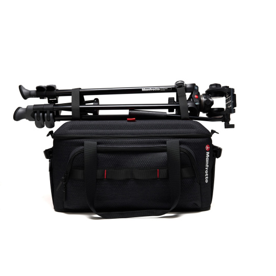Vyztužená poutka na popruhy na zadní straně a na dně brašny umožňují bezpečné přenášení brašny na vozíku nebo kárce při pohybu po studiu nebo na místě natáčení. Součástí balení je také odnímatelný ramenní popruh, který přidává další možnosti nošení.