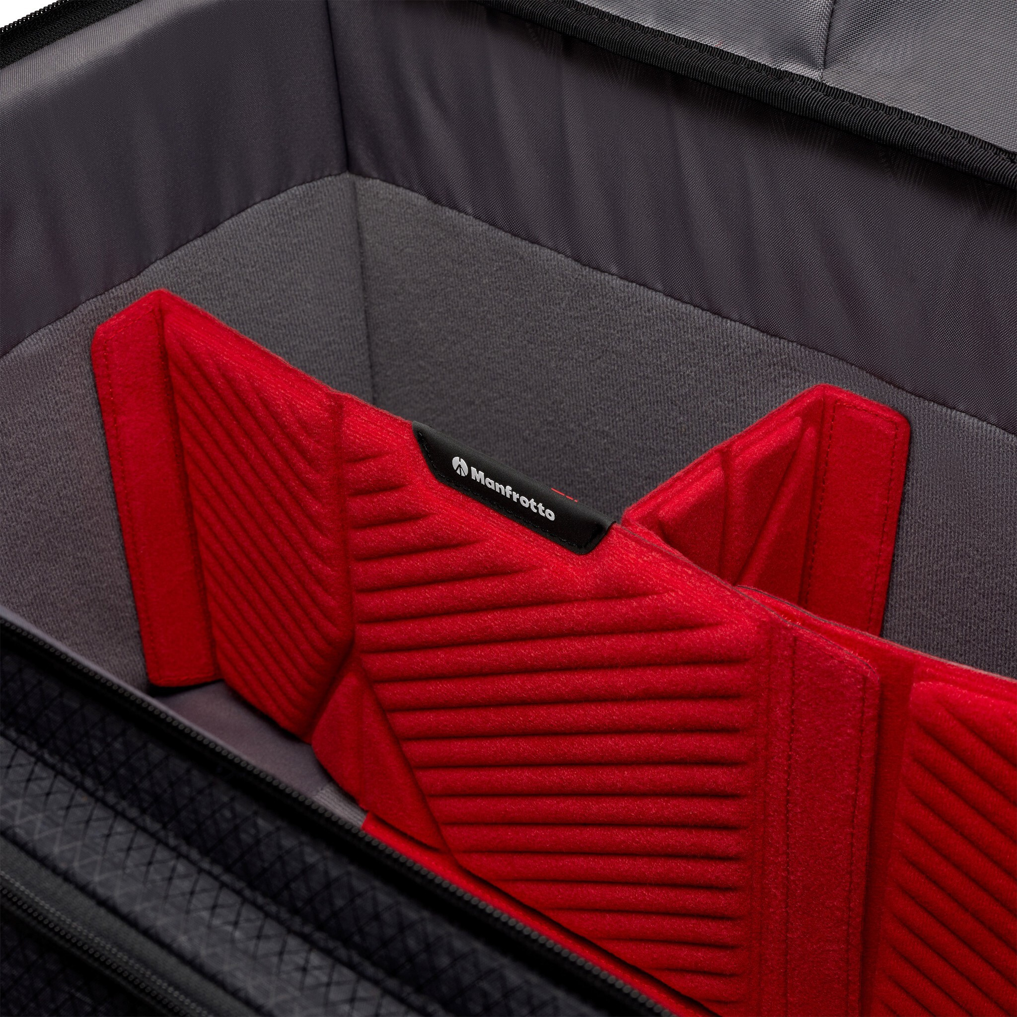 Horní víko se vyznačuje novým hybridním přístupem k ochraně. Měkké a tvrdé materiály byly zkombinovány tak, aby vznikla nová, jedinečná vlastnost: díky tepelně tvarovanému ochrannému víku z plastu EVA budou mít profesionálové při přepravě svého vybavení klid bez ohledu na podmínky. Díky této tvrdé platformě pojme horní víko sadu videostativů Fast a další plně naložené brašny Cineloader lze naskládat na sebe, aniž byste se museli bát, že se poškodí to, co je uvnitř.