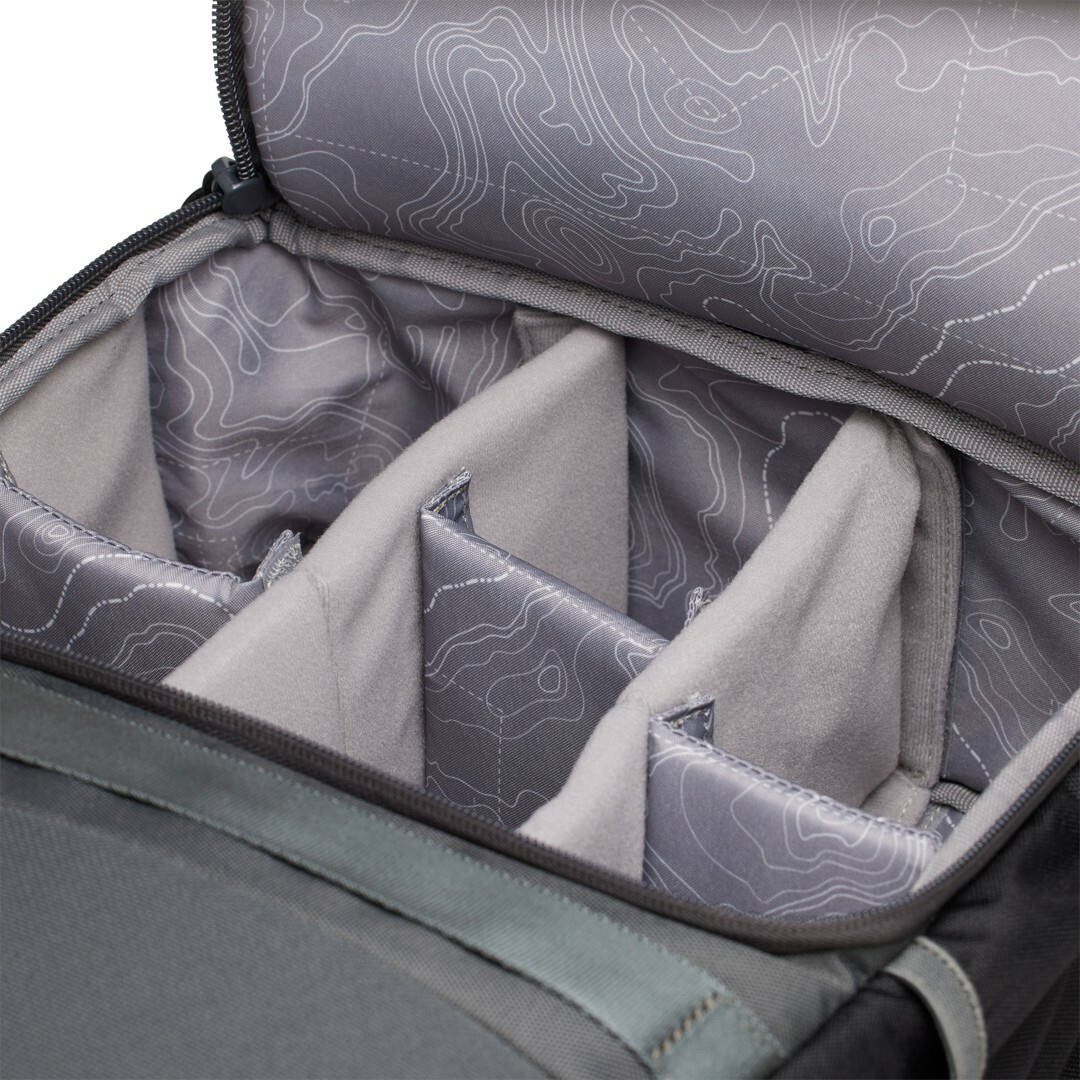 Batoh má nastavitelné pěnové přepážky, díky kterým si jej můžete přizpůsobit velikosti své techniky a zajišťují, že bude technika vždy chráněná a v bezpečí. Tato část batohu je přístupná pouze zezadu, což zajišťuje další bezpečnost. Zadní přístup k foto výbavě umožňuje batoh položit a snadno vidět veškeré vybavení na jednom místě. K dispozici je také integrovaná kapsa na notebook, což vám poskytuje ještě více flexibility.