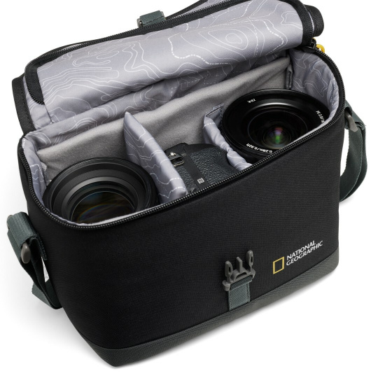 Brašna National Geographic Medium je navržena pro digitální zrcadlovky nebo bezzrcadlovky se dvěma dodatečnými objektivy (v závislosti na velikosti), příslušenstvím, bateriemi nebo paměťovými kartami. Díky nastavitelným pěnovým přepážkám si můžete vnitřek tašky přizpůsobit svým potřebám.