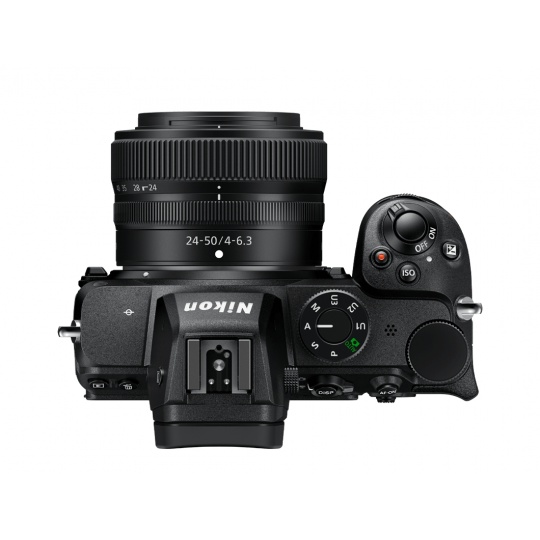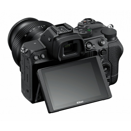 Fotoaparát, Objektiv Nikon Z 24-50 mm f/4-6,3 (přední a zadní krytka),Krytka těla BF-N1, gumová očnice DK-29 (nasazená na fotoaparátu), dobíjecí lithium-iontová baterie EN-EL15c s krytkou kontaktů, nabíječka baterií MH-25a, popruh AN-DC19, kabel USB UC-E24, krytka sáněk pro upevnění příslušenství BS-1