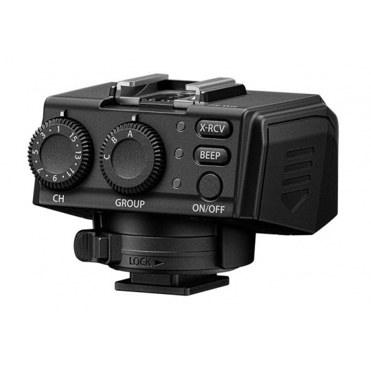 - Bezdrátový přijímač pro řízení více bleskových jednotek dálkově z fotoaparátu