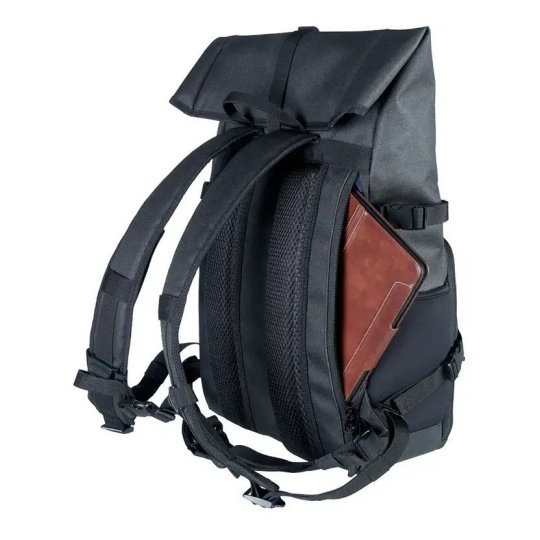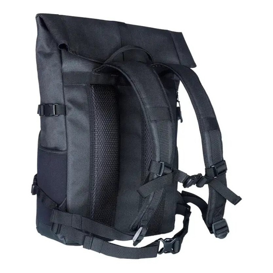 Horní část batohu můžete srolovat. To společně se zipovou kapsou na přední straně umožňuje rychlý přístup k vašim věcem. Vnitřní strana zipové kapsy obsahuje přihrádky na paměťové karty, dokumenty nebo jiné příslušenství. Nespadne úplně dolů, ale vějířovitě se rozkládá, takže při otevření nevypadnou žádné produkty.