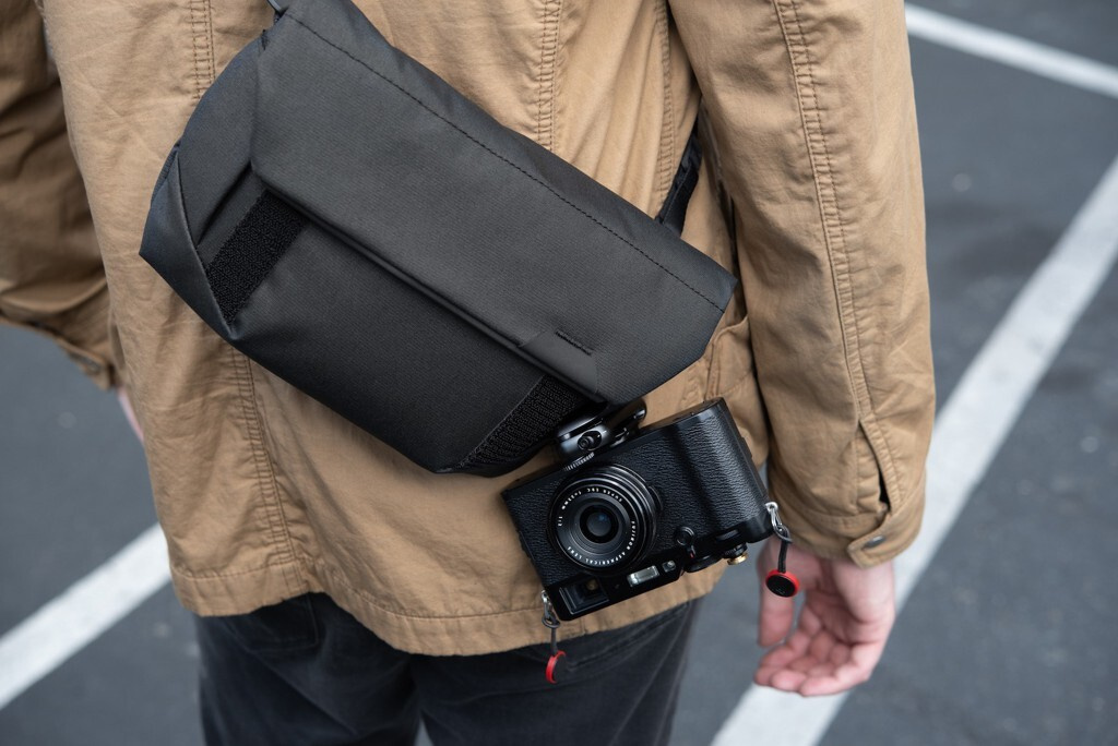 - Připojovací místa: Dvě místa na předně-bočních stranách kapsy pro připevnění držáku Capture, takže můžete pohodlně připevnit menší fotoaparáty, objektivy nebo dalekohledy.