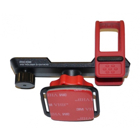 Lepící držák pro upevnění fotoaparátu na hladkou plochu. Držák je opatřen gumovým zajišťovacím rámečkem a je natáčen pomocí aretovatelného kloubu.
