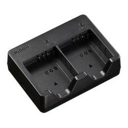 Nabíječka baterií Ricoh BJ-12 dokáže současně nabíjet až dvě dobíjecí baterie DB-120. Když je baterie vybitá, lze ji plně nabít přibližně za 2 hodiny. Nabíječka používá USB-C kabel. Kabel, síťový zdroj ani baterie není součástí dodávky.